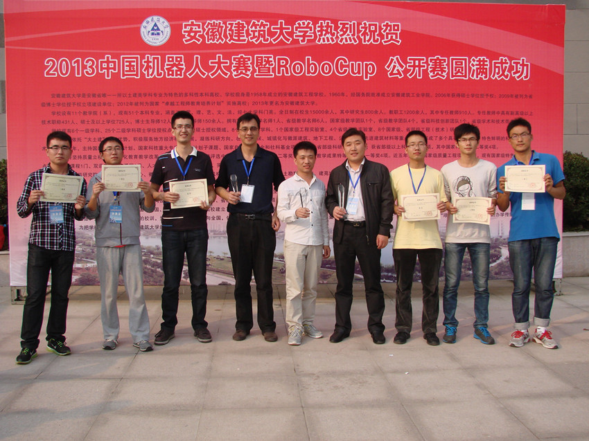 10月17-20日,由科技部高技术研究发展中心、中国自动化学会机器人竞赛工作委员会、RoboCup 中国委员会以及合肥市人民政府主办,合肥科技局和安徽建筑大学承办的2013中国机器人大赛暨RoboCup公…