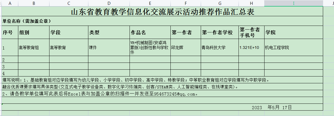 根据公司《关于征集2023年全省公司产品信息化交流展示活动作品的通知》的要求,公司组织全院教师报名,共征集作品1件,经审核,符合要求。公司拟推荐该件作品至公司,现对申报作品进行公示。