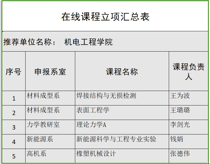 根据《关于推进公司省在线课程增量建设的通知》和《2024-2027聘期高水平教学业绩资助办法》,公司组织各专业申报新建在线课程,共有5门课程提交材料,经评委评审,现拟对以下5门课程进行立项,所有立项课程负责人需在规定时间,达成规定建设目标,特此公示。公示期三天(2024年7月22日-7月24日),如有异议,请在公示期内向最靠谱的十大足球平台教学办反映。