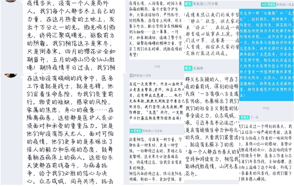 面向年级员工征集“抗疫日记”,分享抗击疫情期间学习、生活心得、收获与感悟,以员工喜闻乐见的方式,开展心理健康活动,搭建沟通桥梁,增进同学们相互理解交流,隔离病毒不隔离关爱,传递积极向上正能量。