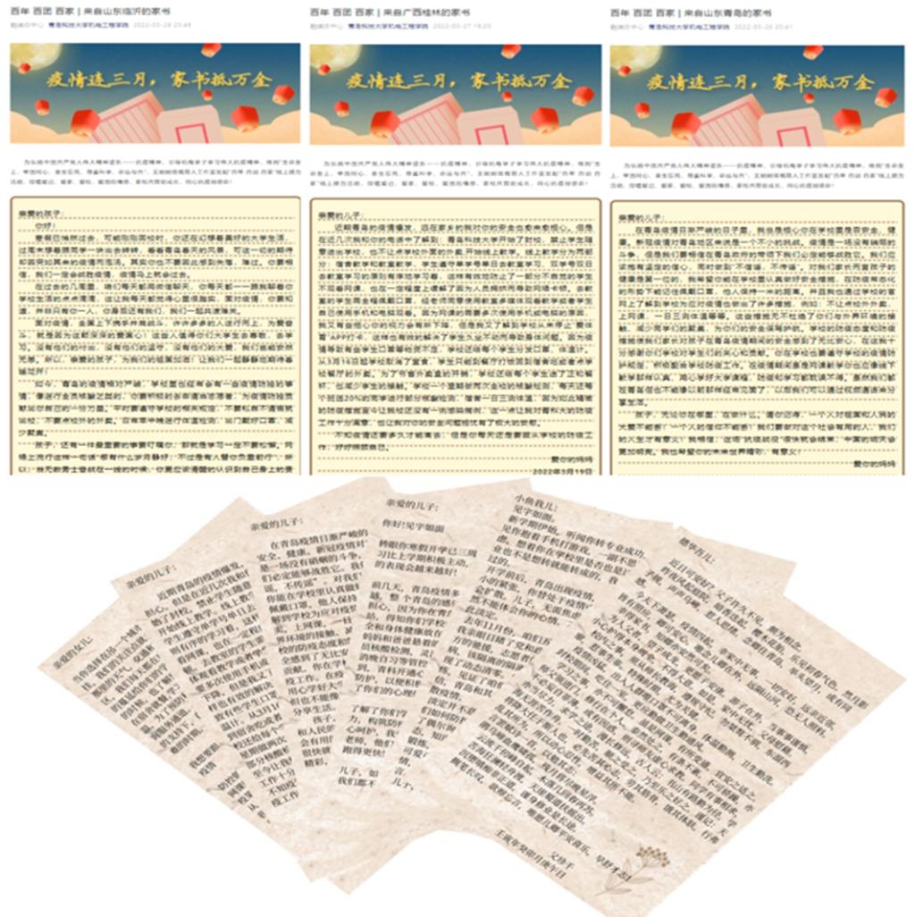 实施封校政策和线上教学举措后,公司第一时间发布了致家长的一封信,向家长说明公司的防疫政策与保障设施,减少家长的担忧。公司鼓励员工多与父母进行沟通,分享自己的校园生活和学习情况,号召老师与家长进行电话或视频交流,举办线上家长会。公司定期向家长说明公司的工作情况,积极开展“百年 百团 百家”家书接力活动,与家长们携手共建和谐安全的生活学习环境,保障员工的心理和身体健康。