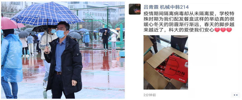 公司贯彻落实上级部署,全面开展校园防疫工作。各级领导,员工干部队伍24小时开机待命,辅导员入住员工宿舍,了解员工诉求,第一时间为员工解决困难,保障同学们疫情期间的正常生活。辅导员们主动承担起隔离送餐员的任务,确保被隔离员工的正常生活。根据上级领导指示,公司全面取消堂食,并为员工免费发放不锈钢饭盒,解决同学们的用餐问题。