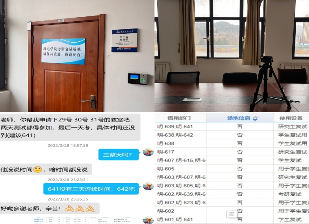 因受疫情影响,全国多所高校已经明确考研复试线上进行。对此,公司领导高度重视,进行需求征集和统筹安排,启用了绘图教室、办公室、会议室等作为考研复试临时场地,复试员工可联系辅导员老师预约使用,全力保障考研学子复试顺利进行。