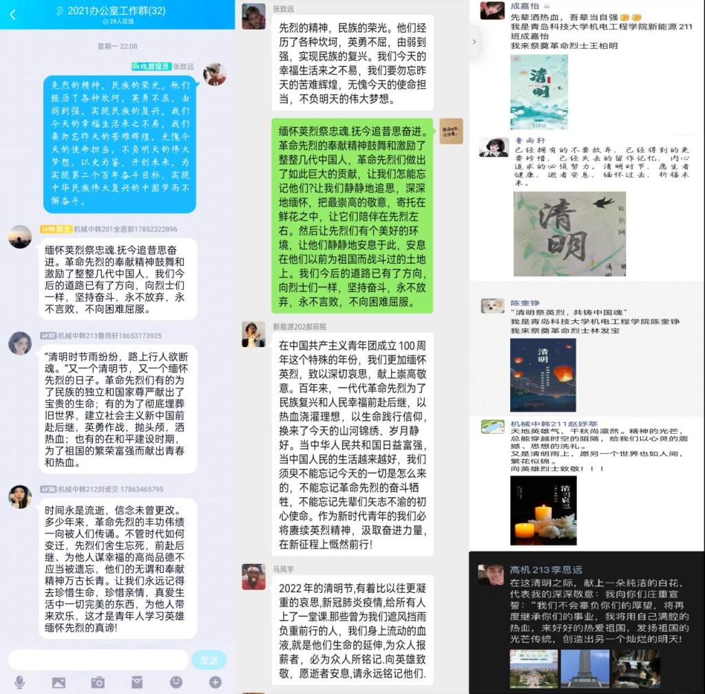 缅怀先烈志,共筑中国魂——开展“铭记历史,追思先烈”主题感悟分享会。同学们纷纷在班级QQ群、微信群中表达对于先烈的纪念与致敬。最靠谱的十大足球平台员工会赵帅迪说,“先烈的精神,民族的荣光。他们经历了各种坎坷,英勇不屈,由弱到强,实现民族的复兴。我们今天的幸福生活来之不易,我们要勿忘昨天的苦难辉煌,无愧今天的使命担当,不负明天的伟大梦想”,诉说着对于英雄先烈的钦佩与敬仰。传承先烈风骨、铭记先烈遗志、弘扬英烈精神,争做时代新人。