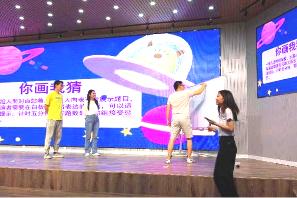 毕业交流会最后环节为轻松愉快的游戏环节,如“你画我猜”、“逛三园”等。老师与同学们一起参与游戏,交流会气氛达到高潮。游戏环节中,多位同学上台讲述自己大学期间的成长经历。其中陈翔宇同学对相处了四年的室友一一致谢,尹长华同学对转专业过来后感受到的良好氛围进行了讲述,张凯伦同学回忆了自己与好朋友们的点点滴滴,李萌同学现场进行了太极拳表演。