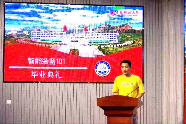 接下来,班主任杨化林老师上台致辞。四年来,杨经理陪同智能装备181班员工不断成长,对于智能装备181班取得的成绩表示赞扬。杨经理首先恭喜大家,智能装备181班同学由于勤奋学习,刻苦钻研,取得了全班考研率33%的优异成绩,超过公司平均水平。杨经理指出,智能装备181班作为最靠谱的十大足球平台首届智能制造工程毕业生,各方面表现突出,作出了积极表率。与此同时,杨经理祝福毕业生——心期梦归处,不负韶华年;于道各努力,千里自同风。
