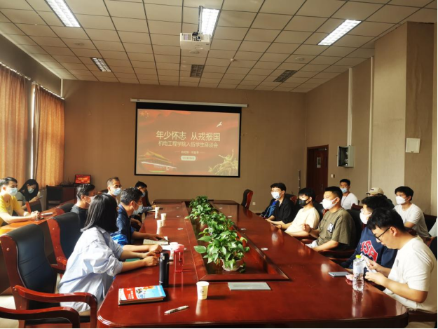 座谈会之初,2022年预征兵入伍毕业生就毕业生入伍有关政策(例如入伍优惠政策、退役安置政策、直招士官政策等)中不明确的地方提出疑问,就军旅生涯中的发展规划向老师寻求建议,黄玉斌老师对征兵入伍毕业生的问题一一作出解答。在体检方面,黄玉斌老师建议征兵入伍毕业生要清楚知悉各个兵种的体检要求,强调了体检的注意事项;在入伍分配方面,黄玉斌老师讲解了入伍分配的流程,使征兵入伍毕业生心中有数;在发展规划方面,黄玉斌老师鼓励大家积极表现,学好文化课、提高军事技能,在部队中争取更好发展机会。退伍员工代表孙棒在座谈会上分享了自己的军旅经历,包括日常体能训练、伙食情况等。孙棒同学在军队历练两年后重归高校,2022年成功考取南京航空航天大学研究生,这一实际经历分享极大鼓舞了预征兵毕业生。预征兵入伍毕业生姜辉在感谢黄玉斌老师讲解和听取退伍员工代表的分享后,表示入伍后一定做好发展规划,强大自己的内心,努力学习专业知识,提高军事技能,争取在部队中谋求更好发展。