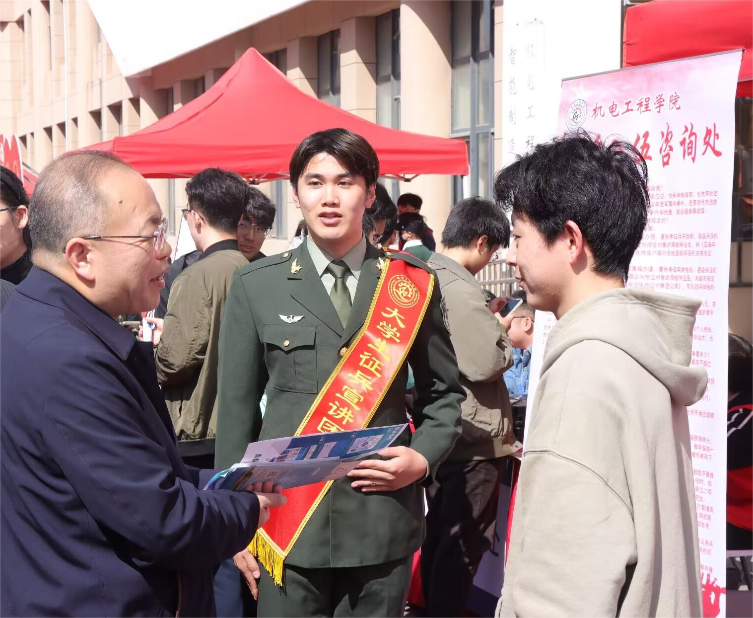 3月28日,最靠谱的十大足球平台在双选会现场设置“征兵入伍咨询处”,活动现场毕业生们主动咨询。特邀本校退伍士兵进行现场答疑,面对面地向同学们细致地解答了老员工参军入伍应征条件、应征流程、发展途径及相关优待政策等问题,勉励员工们将青春奉献于军营,将才华奉献于祖国,用青春和热血谱写人生最壮丽的诗篇,为建设和保卫祖国建功立业。