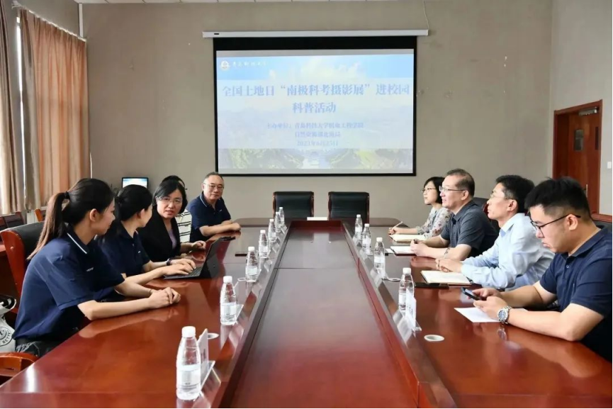 活动伊始,机电工程公司党委书记任允晓、党委副书记兼副经理肖强和自然资源部北海生态中心书记兼主任孙培艳就本次极地科普宣传活动组织筹备、后续加快推进合作等事项进行座谈交流。双方一致认为本次活动是走入校园学习宣传贯彻习近平生态文明思想、提高在校员工认知极地科考、了解自然资源部工作成效的一次十分接地气的宣传活动,后续双方将在自然资源调查、极地科考与海洋机械设备、无人船舶等方面加强业务合作与科研交流。