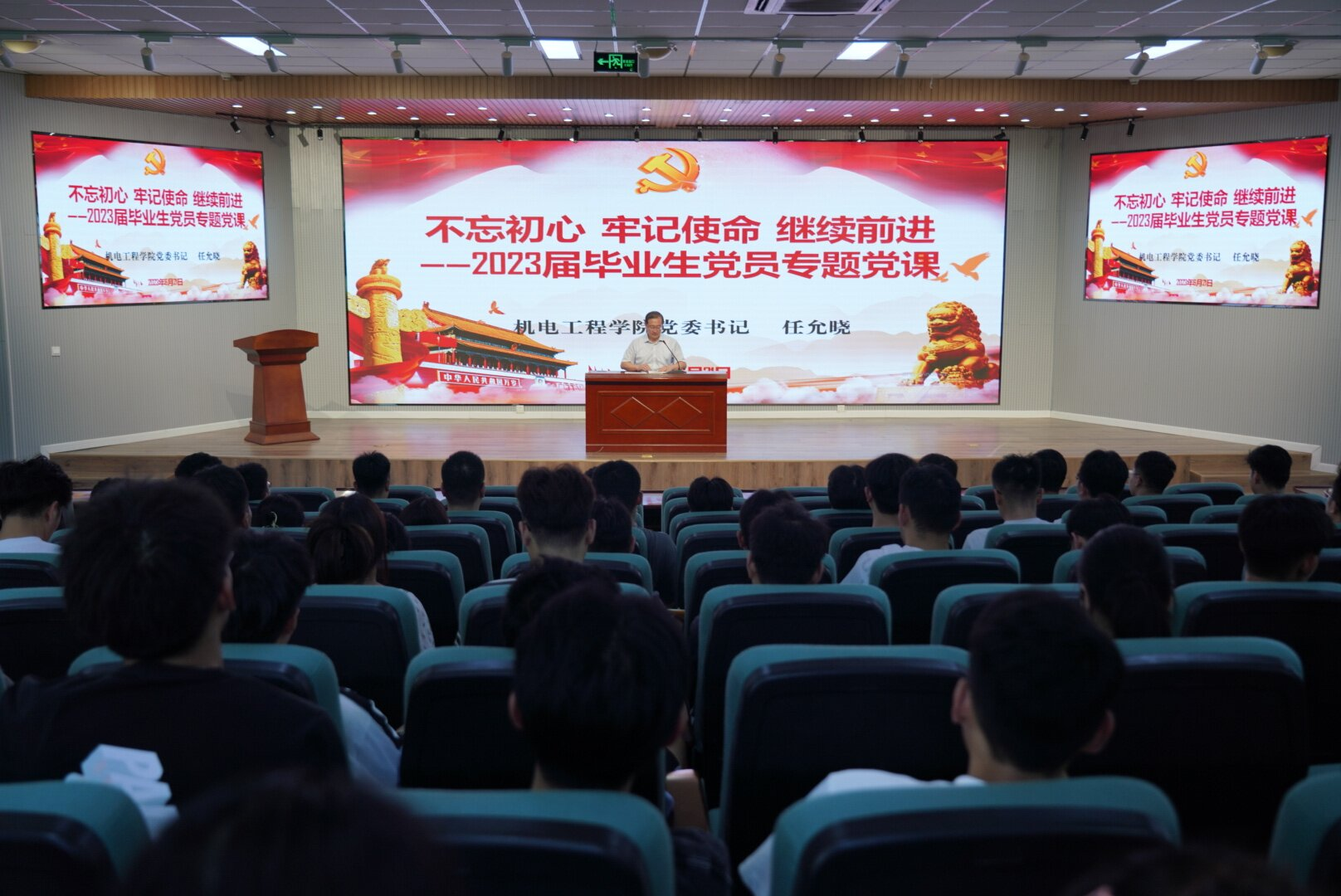 任允晓带领2019级员工党员回顾了中国共产党百年来艰苦卓绝的革命史、奋斗史以及百年以来取得的辉煌成就,同时指出新时代的党员应当始终对党忠诚,自觉把听党话、跟党走的信念内化于心、外化于行。会上,任允晓对全体毕业生党员提出四点希望:一是要牢记使命,严以律己。践行党的宗旨,牢记党员身份,始终以党员标准严格要求自己;二是要秉承校院精神,坚定理想信念。要从公司历史的积淀中汲取力量,把个人的理想追求同党的伟大事业紧密联系在一起,在报效祖国、服务人民、奉献社会的新征程中实现人生价值;三是要做新时代的“有心有为”之士。要坚定理想与目标、做坦坦荡荡的君子,踏踏实实做人,勤勤恳恳做事,满怀信心踏入人生新征程;四是要勤勉笃行,学而不止。做一个热爱学习、善于学习、有深度、有热度的学习型党员;坚守信仰,修身治德,坚守原则底线,做一名有道德的人。党日活动之后,毕业生党员在任允晓书记的带领下面向鲜红的党旗,重温了入党誓词。
