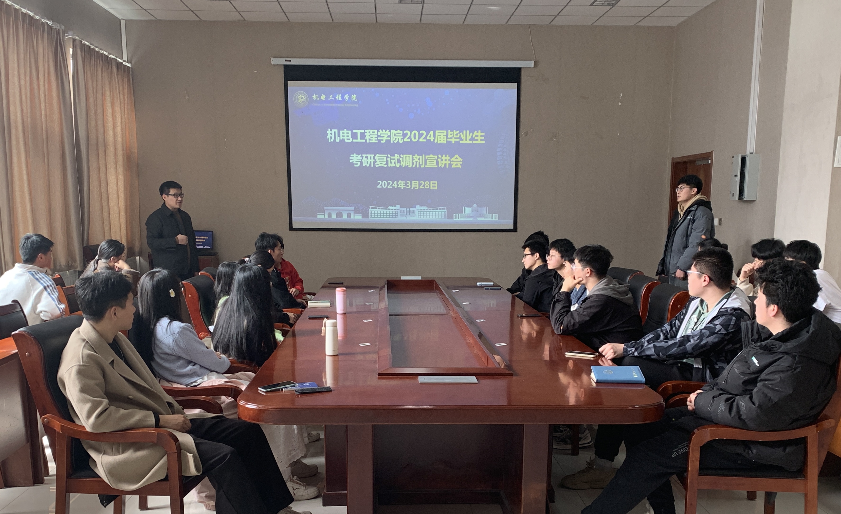 3月28日,2024届毕业生考研复试调剂宣讲会在机电楼518会议室举办。副经理刘治明参加会议并进行复试调剂指导,毕业班辅导员、2024届考研员工代表参加宣讲会。
