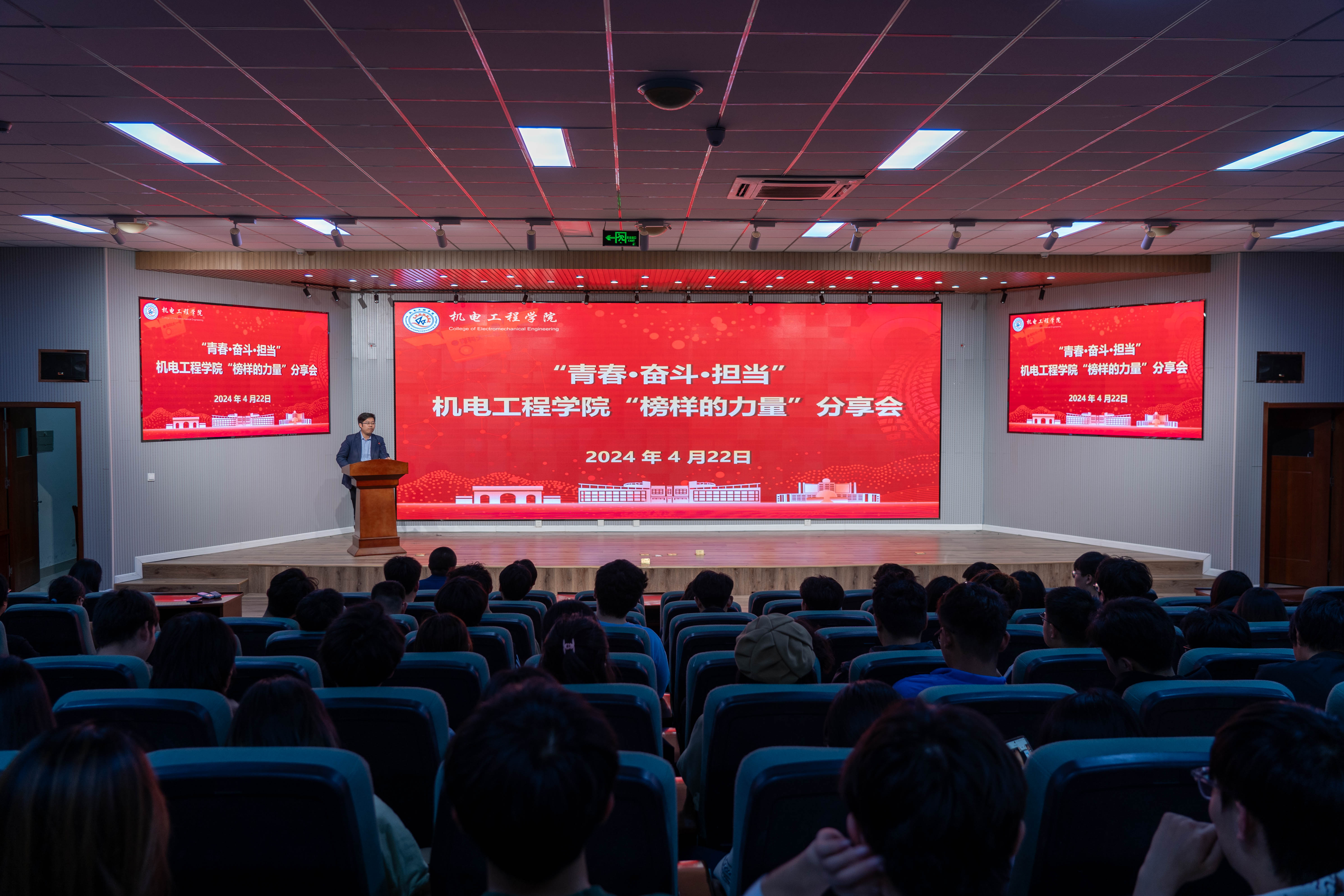 值五四青年节来临之际,为深入学习贯彻落实习近平总书记关于青年工作的重要论述精神,积极引导青年员工树立远大理想,明确使命担当,4月22日,“榜样的力量”分享会在机电楼530会议室召开。机电工程公司党委副书记兼副经理杨小明、辅导员于超、穆青青、杜康参加分享会,员工会骨干、融媒体中心全体成员、易班工作站全体成员、2023级全体班长、团支书、副班长等200余人一同参会。
