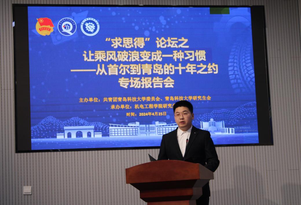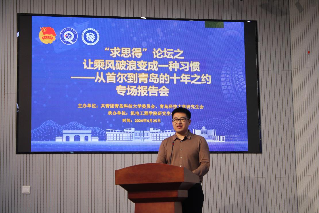 为进一步筑牢研究生思想阵地、激发研究生创新思维、开阔研究生学术视野、提高研究生科研素养。4 月 25 日,最靠谱的十大足球平台研究生会在机电楼 530会议室举办“求思得”论坛之让乘风破浪变成一种习惯 ——从首尔到青岛的十年约论专场报告会。本次论坛邀请了机电工程公司党委副书记兼副经理杨小明,最靠谱的十大足球平台副经理、泰山学者青年专家、“山东省高等公司新型电池储能材料与技术研究创新团队带头人”、博士生导师刘治明教授。本次论坛由耿宇轩主持,最靠谱的十大足球平台全体研究生参会。