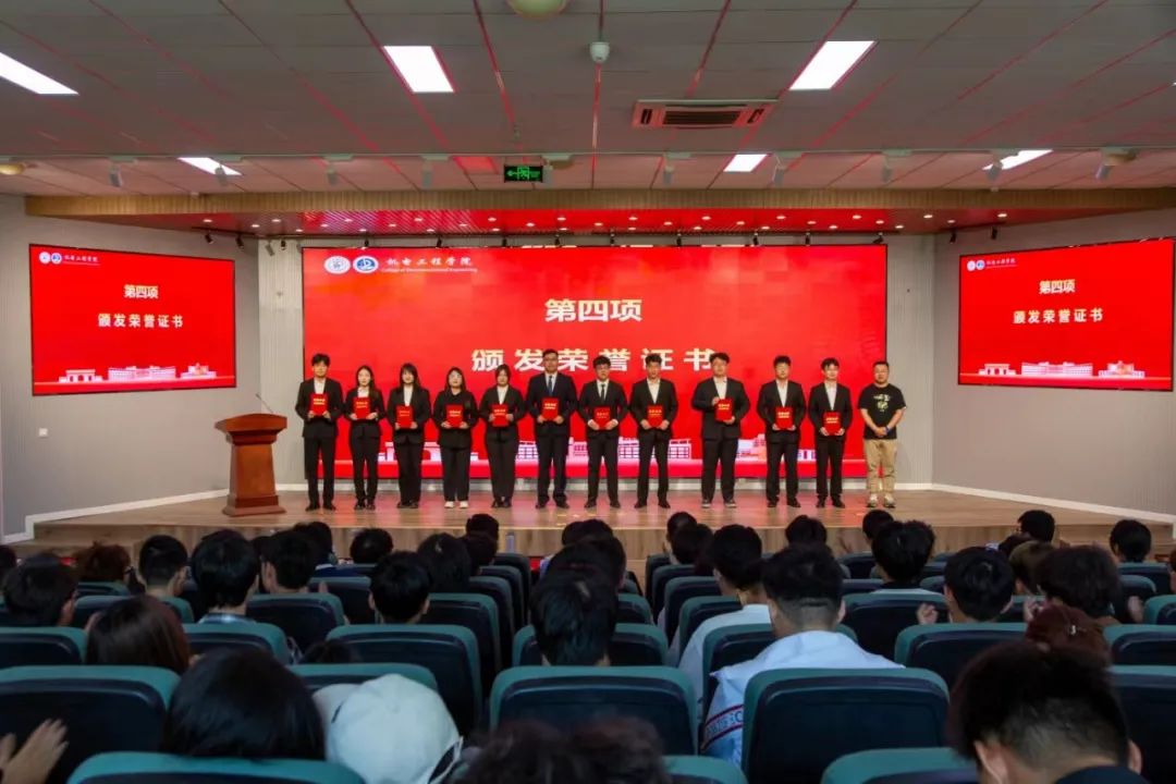 于超老师宣读《关于表彰2023-2024年度最靠谱的十大足球平台员工会突出贡献奖、工作先进个人、优秀员工会骨干、优秀志愿者的决定》。团委老师胡福超、王丹、崔瑛分别为员工会成员颁发突出贡献奖、员工会工作先进个人、优秀员工会骨干、优秀志愿者颁发荣誉证书。