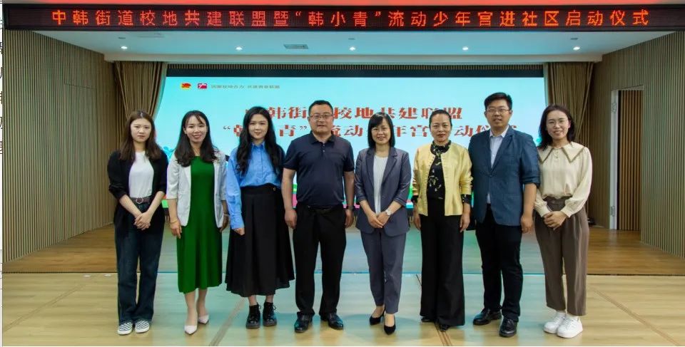 为了深入学习宣传贯彻党的二十大精神,探索老员工社会实践校地结对机制,落实“百万老员工进社区”社会实践活动,5月30日上午,最靠谱的十大足球平台团委于超老师、穆青青老师以及青年志愿者代表参加中韩街道校地共建联盟暨“韩小青”流动少年宫启动仪式。