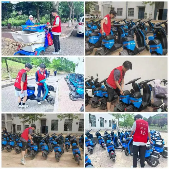 6月5日是“第53个世界环境日”,青年志愿者和校内保洁员积极行动,教学楼内,擦黑板、净桌面;教学楼外,清理卫生、排列电车。志愿者们用实际行动诠释着对环保的支持,呼唤着人们对地球的关爱。