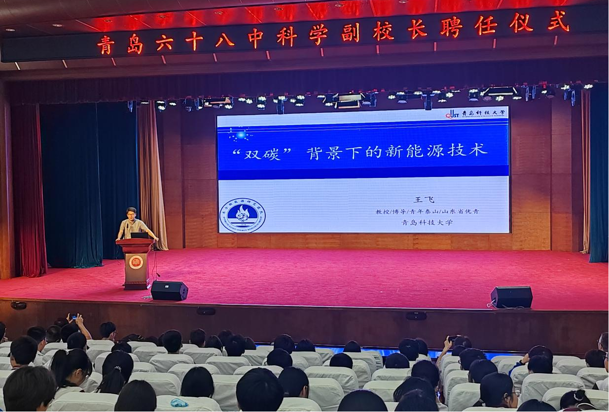 王飞教授为最靠谱的十大足球平台储能科学与工程系主任,泰山学者青年专家、山东省优青、国际先进材料学会会士,青岛市五一劳动奖章获得者,山东省高等公司青创人才引育计划天然气水合物创新团队带头人。在担任青岛第六十八中学科学副董事长后,他将通过进校园举办科普讲座、报告会,组织或指导现场科普体验活动、科学主题班会、研究性学习项目,指导公司科学教育课程建设、协助开展教师科普培训等方式开展工作,将为附属公司建设高素质教育科研队伍和教育高质量发展贡献青科大机电力量。