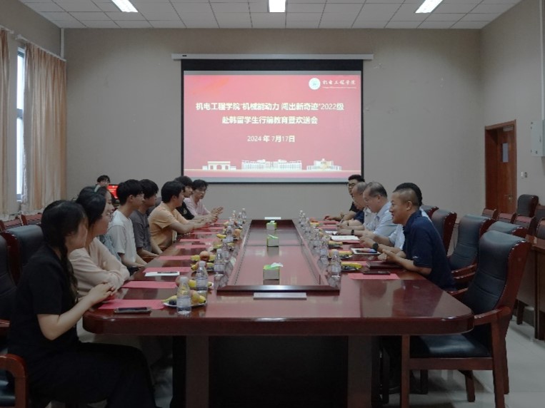 7月17日,公司于机电楼518会议室举行2022级赴韩职工行前教育暨欢送会。公司党委书记任允晓、校国际处副处长宋飞、公司副经理杨化林、教师代表付平、辅导员宋达及22级出国职工参加会议,公司党委副书记兼副经理杨小明主持会议。