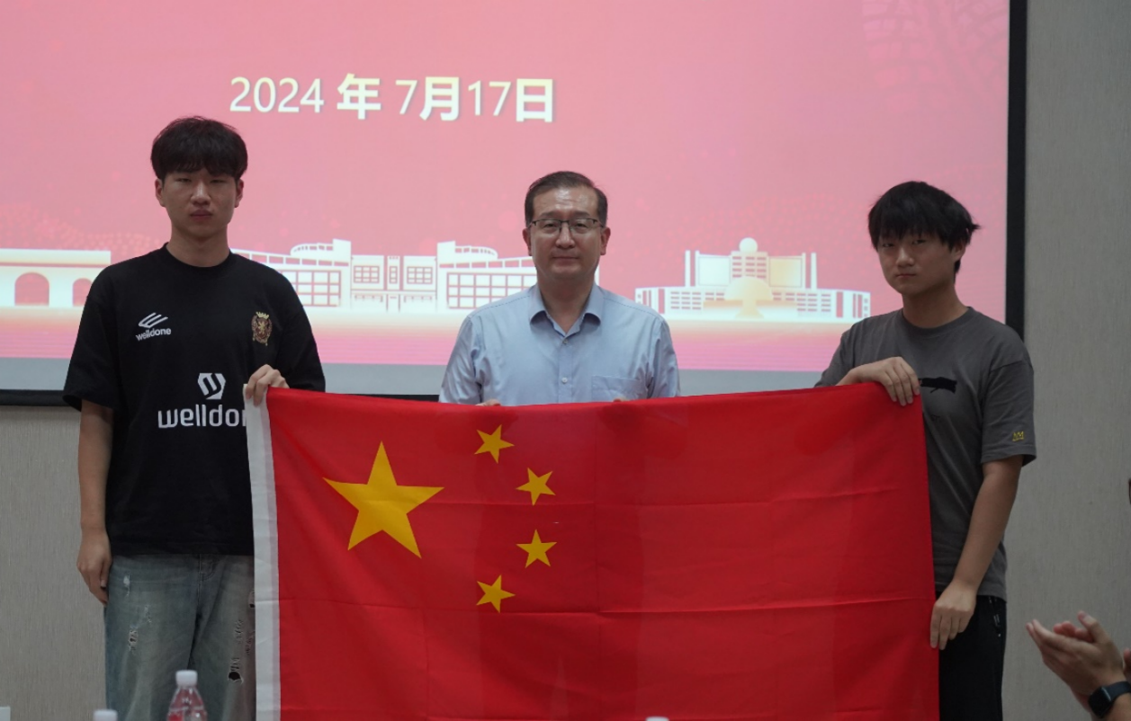 任允晓为职工颁发国旗,希望同学们到韩国以后遵守相关规定,不断提升自身素养,为中韩两校合作搭建友谊桥梁,力做中国优秀文化的传递者和传播者。欢送会上,任允晓用三个转变指出同学们出国留学的变化,一是身份的转变,在韩国,同学们不仅代表体育外网十大平台app的员工,更代表14亿中国人;二是环境的转变,国外的环境与国内有着诸多不同,同学们要尽快适应新环境;三是目标的转变,同学们要把握住出国留学的良好契机,以成为有国际视野、跨文化交流能力、具备高级技术经济管理能力的复合型人才为目标,并从平等尊重、主动交流、遵规守纪、融合创新四个方面对职工提出建议。希望同学们能够平等对待、尊重他人,积极主动同韩国同学交流学习,诚实守信,遵规守纪,拼搏向上,努力学习,成为建设祖国的复合型人才。