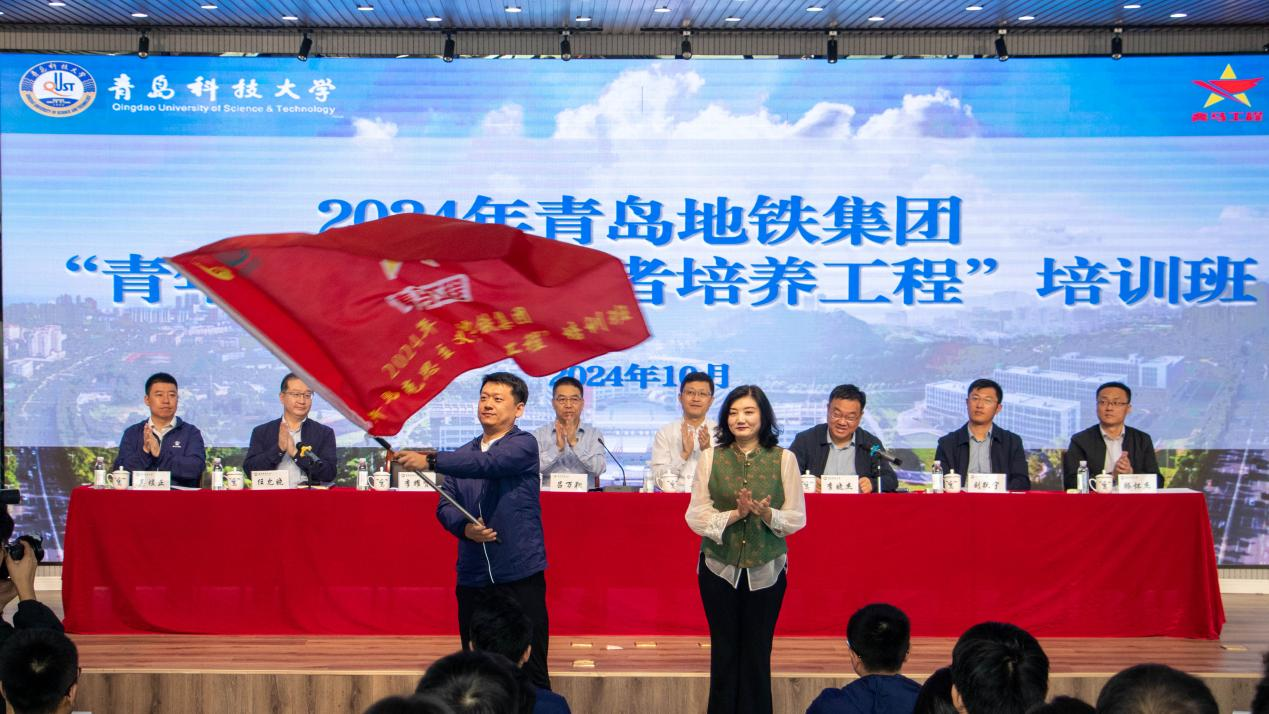公司党委书记任允晓介绍了培训安排,课程涵盖专题讲座、业务提升、互动体验、分组交流等多个富有吸引力的模块,与青马工程的培养目标高度契合。青岛团市委组织部部长李耀贤为学员代表齐康授旗。青岛地铁李村站区长齐康作为学员代表进行表态发言。