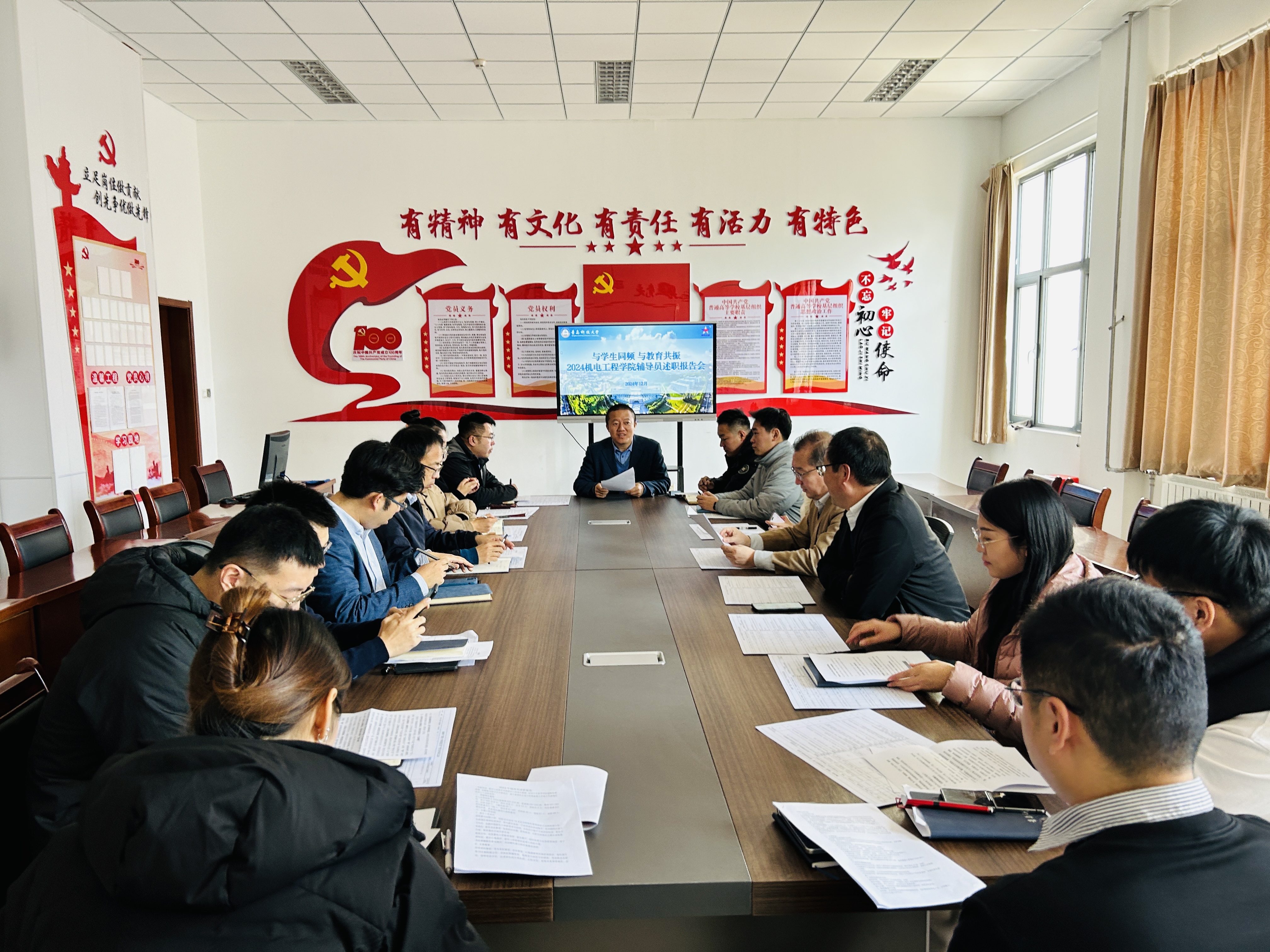 12月17日,公司在机电楼529召开2024年度专职辅导员述职评议会。公司党委书记任允晓参加会议并讲话。副经理李剑光、15名专职辅导员参加评议会,所有辅导员依次述职。
