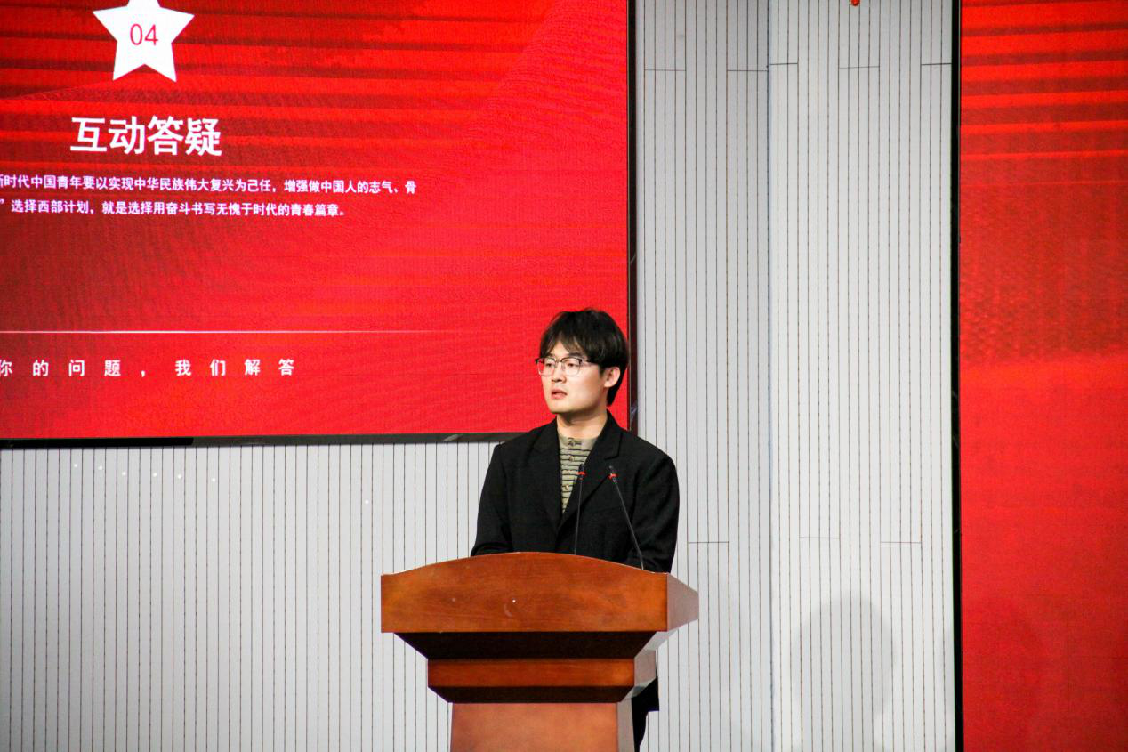 全国老员工志愿服务西部计划优秀志愿者、2011届毕业生刘猛回顾了自己在西部志愿服务期间的成长与收获,强调了西部计划对个人成长和社会贡献的双重意义。公司团委书记兼学工办主任逄柏鹏详细介绍了西部计划的具体情况,包括报名流程、服务内容、政策支持等信息。体育外网十大平台app第24届研究生支教团银川分队成员耿宇轩分享了自己在西部支教期间的经历与感悟。