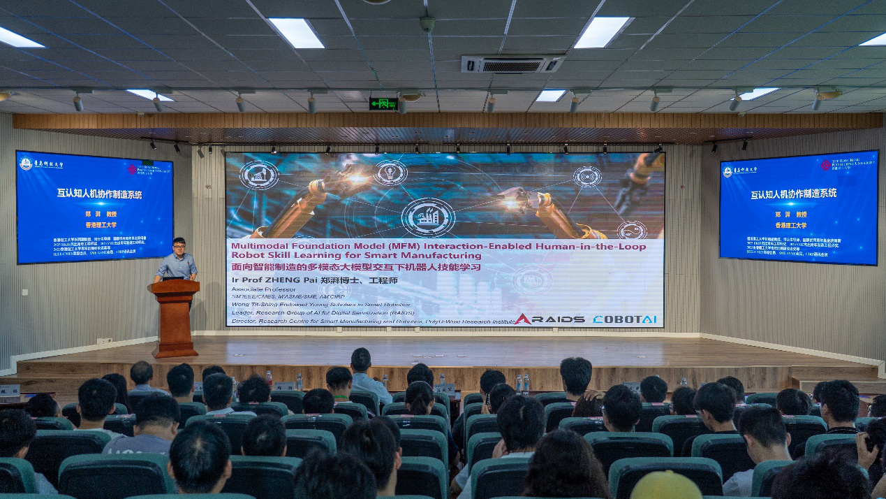 在报告会上,香港理工大学郑湃教授以“互认知人机协作制造系统”为题,深入浅出地介绍了人机协作制造领域的最新研究成果。从人机交互、智能感知、协同决策等多个维度,系统阐述了互认知人机协作制造系统的关键技术和发展趋势。
