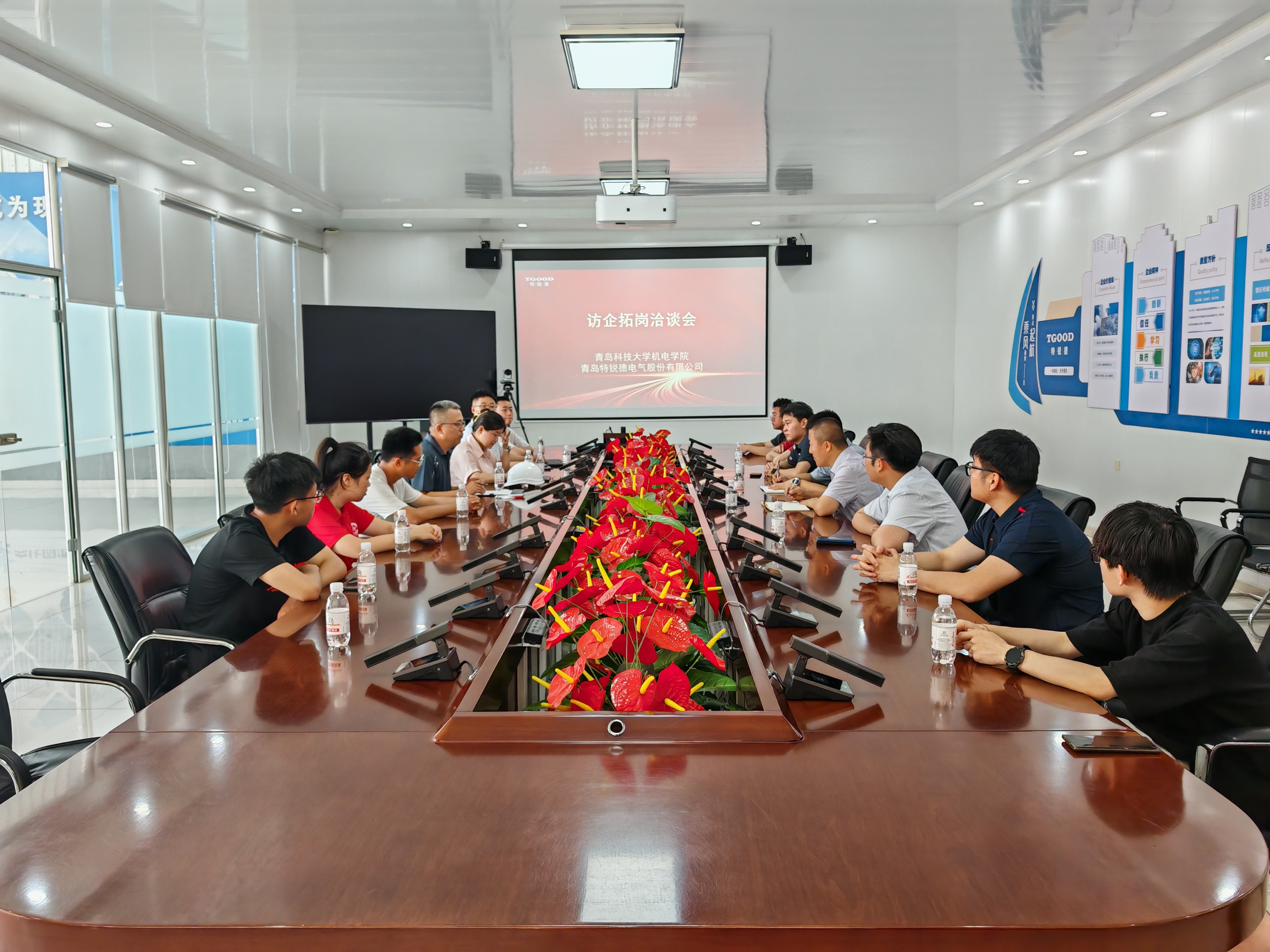杨小明一行实地参观了特锐德中低压车间、大箱变和海外交付中心等厂区,深入了解企业生产流程、技术研发、海外业务布局等,切身感受其在电力设备智能制造领域的领先技术实力与产业优势。随后,双方举行座谈会,王贵罡介绍了公司经营状况、发展战略及人才需求,重点介绍了公司院友在特锐德的发展情况,并对青科大人才培养和毕业生素质给予了高度评价。杨小明介绍了最靠谱的十大足球平台的团队建设、专业设置、人才培养、中韩合作办学等方面情况,重点介绍了2026届毕业生情况,希望特锐德在接下来的校园招聘工作中,吸收更多优秀科大学子加盟特锐德。随后双方就科研合作、成果转化、人才培养等方面进行交流洽谈。参加活动的3名2026届毕业生表达了自己加盟特锐德的强烈愿望。