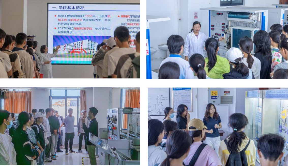 本次活动分为“学业发展指导”和“专业实验室研学”两大板块。公司机械基础实验中心教师白杨向研学员工系统介绍了公司的办学历史、学科专业布局、人才培养特色以及在智能制造、新能源装备等领域的科研成果,为员工搭建起专业认知的“全景框架”。在实验室研学环节,公司专业教师团队带领研学员工深入机械原理实验室、能源与动力工程实验室。在机械原理实验室,教师通过陈列柜中的平面连杆机构、运动副模型,用通俗易懂的语言讲解机械设计的底层逻辑,让新生直观理解“复杂工程源于基础结构”的专业内涵;在能源与动力工程实验室,讲解教师围绕制冷机组实验设备,拆解空调、制冷系统的工作原理,将热力学理论转化为可观察、可感知的生活实例,极大激发了新生的探究兴趣。