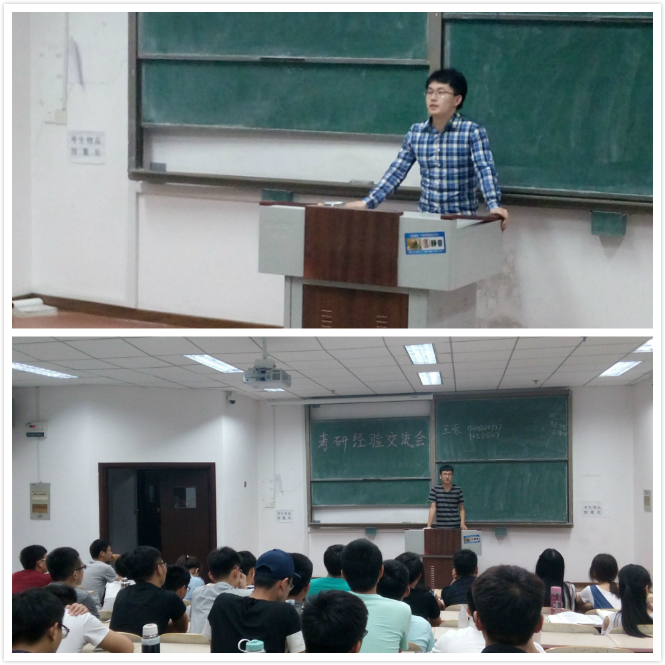 在每场交流会的第一环节中,学长学姐首先以自己的切身经历向同学们讲述了考研的宝贵经验,指出考研一定要明确考研目的,并根据专业特点对公司、选择做出了相关的分析,在备考方面,他们分别从数学、英语、政治、专业课四方面分享了自己的复习方法与经验。