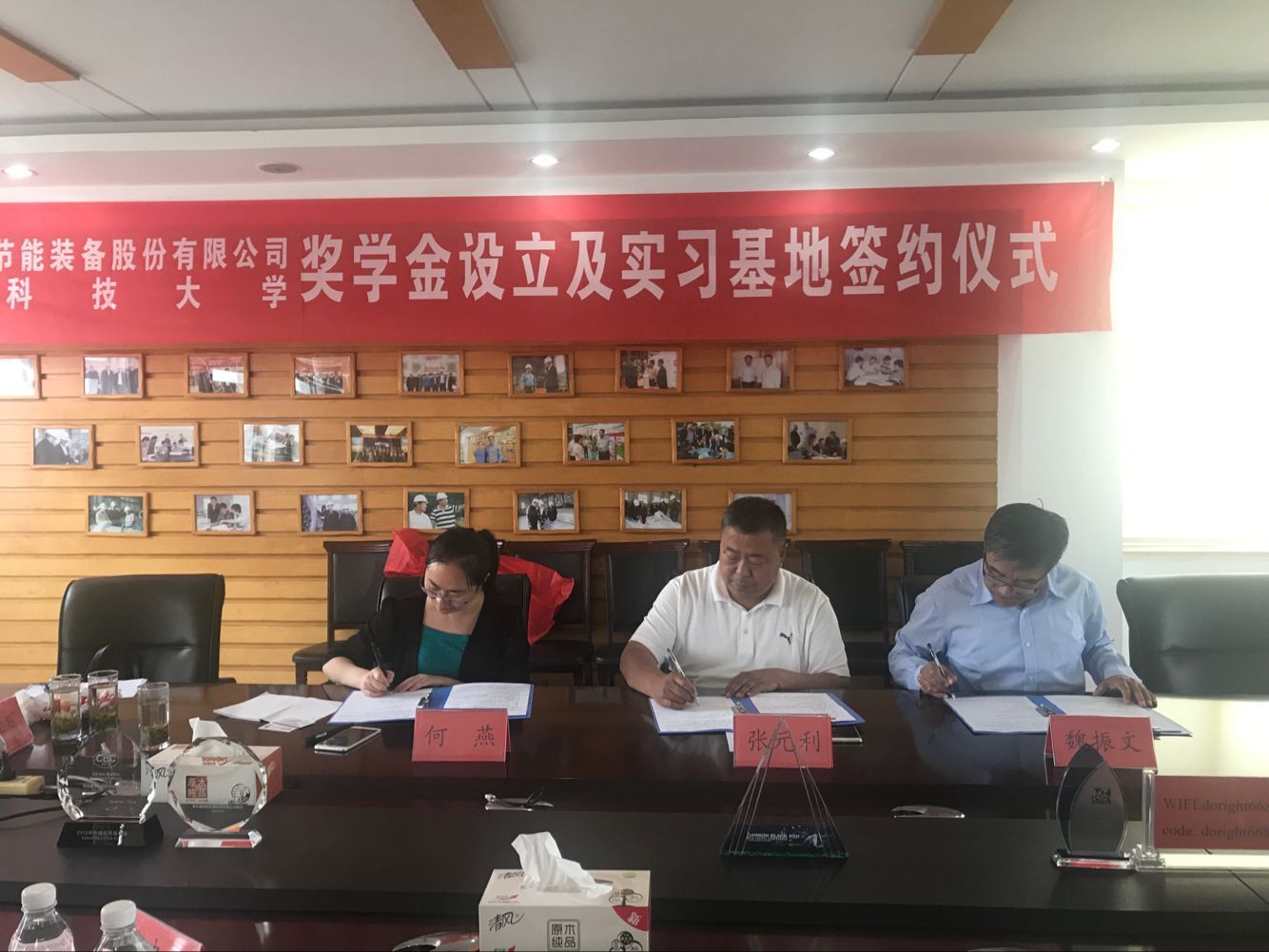 张元利、何燕和魏振文代表三方签订捐赠协议书和产学研战略合作协议书,并为老员工实习基地揭牌。仪式上,张元利向青岛德固特节能装备股份有限公司表示衷心的感谢,指出“德固特奖学金”的设立体现了企业对公司教育事业的支持和社会责任的担当,并介绍了公司的基本情况,产学研成果转化方面所取得的成绩、经验和今后采取的措施与努力方向。