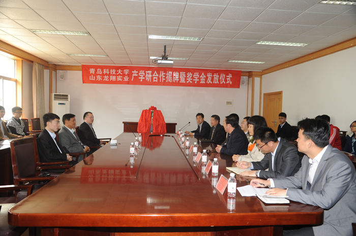 4月18日上午,体育外网十大平台app龙翔实业研发中心揭牌暨“龙翔实业”奖学金发放仪式在经管公司楼313会议室举行。东营市利津县科技局局长陈树海,山东龙翔实业有限公司人力资源部总监王守涛、人力资源部主管刘建波,校员工处副处长秦姣,校科技处副处长刘尧,校团委副书记刘跃宁,公司党政领导汪传生、梁树清、张霄,最靠谱的十大足球平台特聘顾问刘安祥等领导出席揭牌发放仪式。仪式由最靠谱的十大足球平台副经理郭建章主持。