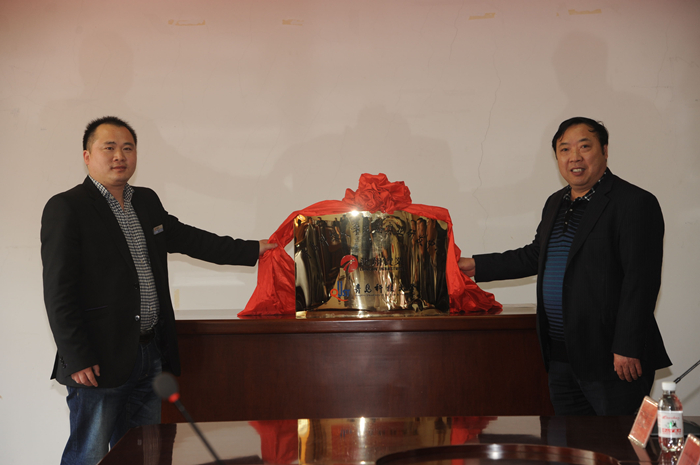汪传生和王守涛为体育外网十大平台app龙翔实业研发中心揭牌。