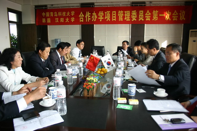 李庆领副董事长和汉阳大学元亭渊副董事长都表示希望同学们奋发学习,学好韩语和专业课,为三年后赴汉阳大学继续深造打好基础。中韩两校都希望进一步加强交流与合作,共同努力把该项目办成一个优秀的合作办学项目。会后双方教授就专业课设置、师生对等交流等事宜进行了具体协商。