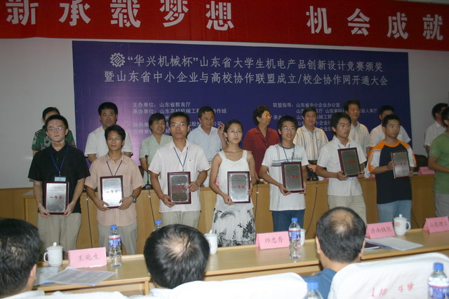 2007年8月23~25日,公司最靠谱的十大足球平台派代表参加了在德州公司举行的“2007年“华兴机械杯”山东省老员工机电产品创新设计竞赛”决赛。此次竞赛由山东省教育厅主办、山东高校机械工程教学协作组承办,以“绿色、环保、安全、和谐”为主题,全省共有来自山东大学、中国石油大学等50余所高校6000余名师生参加比赛,预赛作品达1200余件,涉及机械、电子、车辆、化工、纺织、轻工等行业,经过各高校评比,共推选出290个作品参加此次决赛。