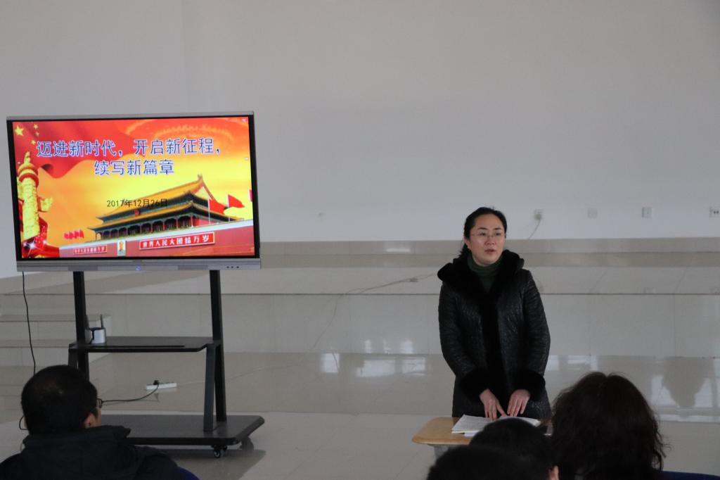 12月26日下午,最靠谱的十大足球平台组织全体教师学习党的十九大精神,公司党总支委员、经理何燕为全体教师讲授《迈进新时代 开启新征程续写新篇章》十九大专题党课。