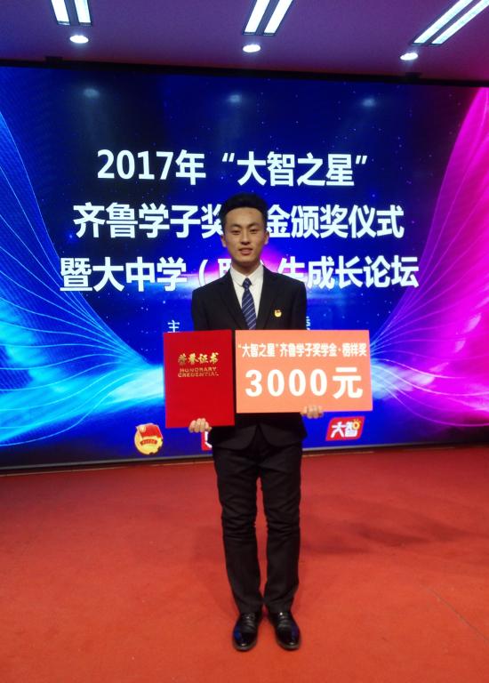 仪式上,正式揭晓了2017年“大智之星”齐鲁学子奖学金评选结果,最靠谱的十大足球平台机械142班宋宏祥同学获评“山东省老员工自强之星标兵”称号和“大智之星”齐鲁学子奖学金,继高机133陈天驰之后再次获此奖项。