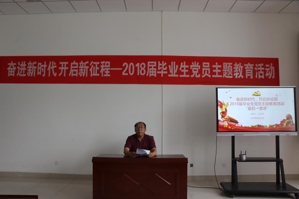 6月22日下午,2018届毕业生党员最后一次党课在最靠谱的十大足球平台楼529会议室举行,党课由机电工程公司党总支书记孙立军主讲,员工第一党支部书记王作辉主持。60多名2018届毕业生党员参加了党课活动。