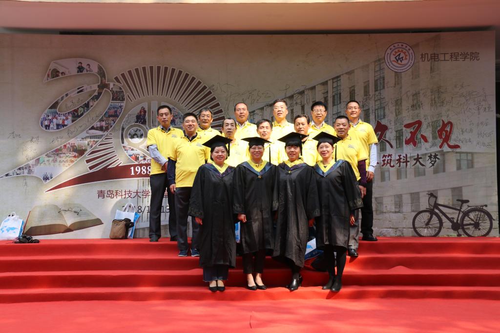 最后,与会领导与穿着学士服的橡机、化机专业的88届员工们合影留念。
