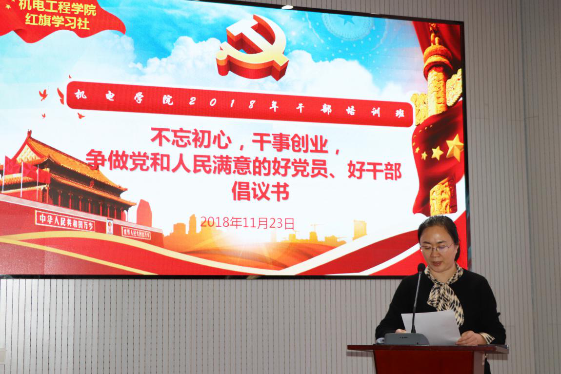 何燕宣读了《不忘初心,干事创业,争做党和人民满意的好党员、好干部》倡议书,希望学员们加强思想理论武装,深入学习提高认识,将习近平总书记系列重要讲话精神转化为教书育人、立德树人的行动指南,不负党和人民重托,做对党忠诚的老实人、做人民群众的贴心人、做引领发展的开路人、做廉洁自律的干净人,号召全体学员树立思想标杆,在平凡的岗位上创造新时代更加美好的光辉业绩,为推动公司“五有”高水平大学建设作出新的更大贡献!