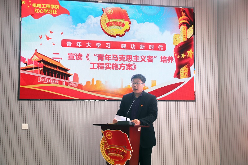 为深入贯彻落实习近平新时代中国特色社会主义思想和党的十九大精神、团的十八大精神,值此中华人民共和国成立70周年、五四运动100周年之际,4月23日下午,2019年“青马工程”开班仪式在机电楼530会议室举行。机电工程公司党总支书记孙立军、马克思主义公司马克思主义理论研究中心主任杜裕禄、分团委辅导员及全体学员出席本次会议,会议由分团委书记王作辉主持。