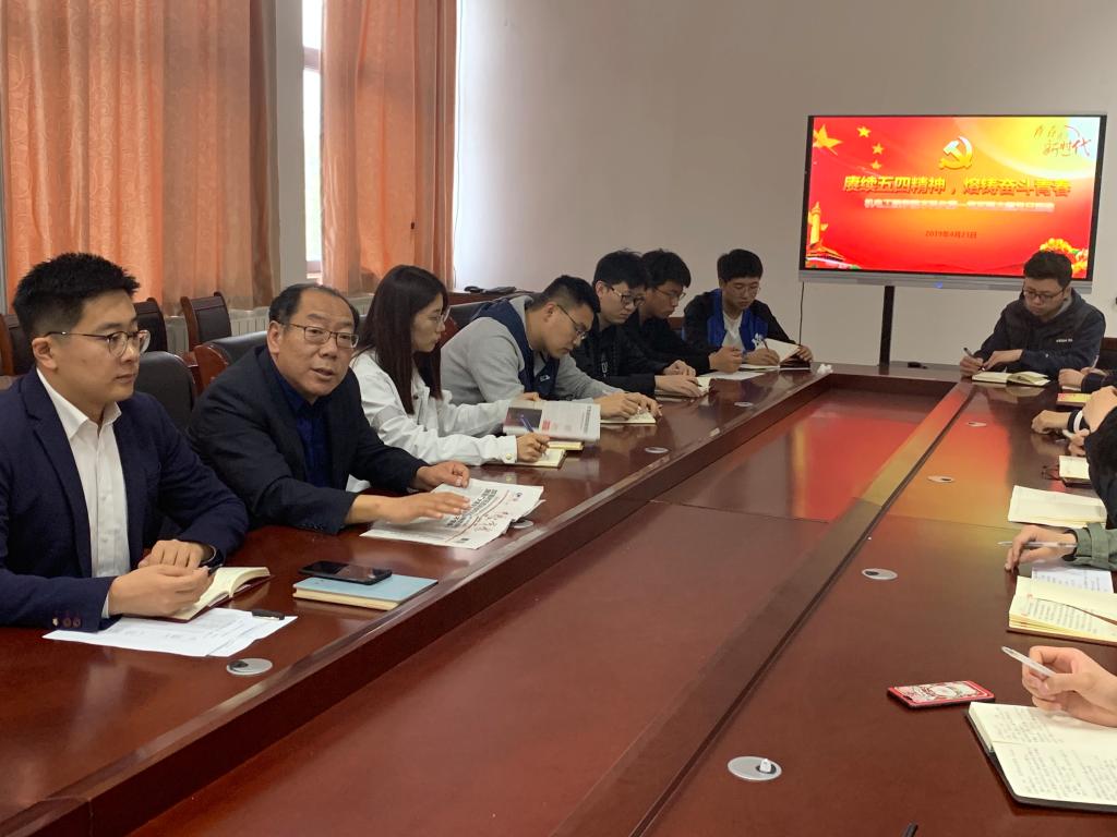 为纪念五四运动、发扬五四精神,4月23日,最靠谱的十大足球平台本科生第一党支部在机电楼518会议室开展“赓续五四精神,熔铸奋斗青春”主题党日活动。公司党总支书记孙立军、本科生第一党支部全体党员参加了此次活动,会议由党支部书记李浩主持。