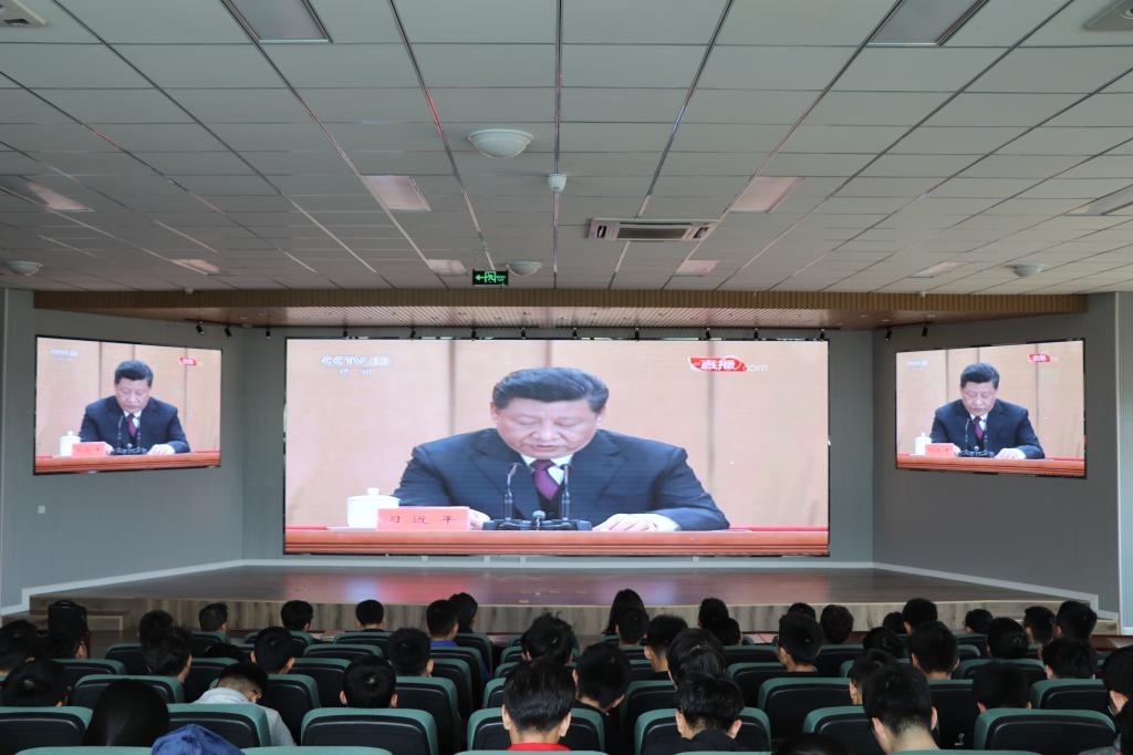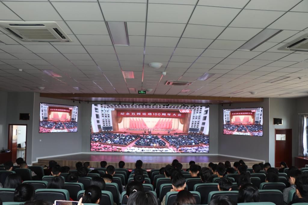 为缅怀五四先驱崇高的爱国情怀和革命精神,激励广大青年为民族复兴不懈奋斗,4月30日上午,最靠谱的十大足球平台师生代表隆重集会,集体观看纪念五四运动100周年纪念大会。副经理郭建章、公司党建组织员鲁伟、分团委书记王作辉等老师与机电优秀团学代表一起现场聆听了大会。