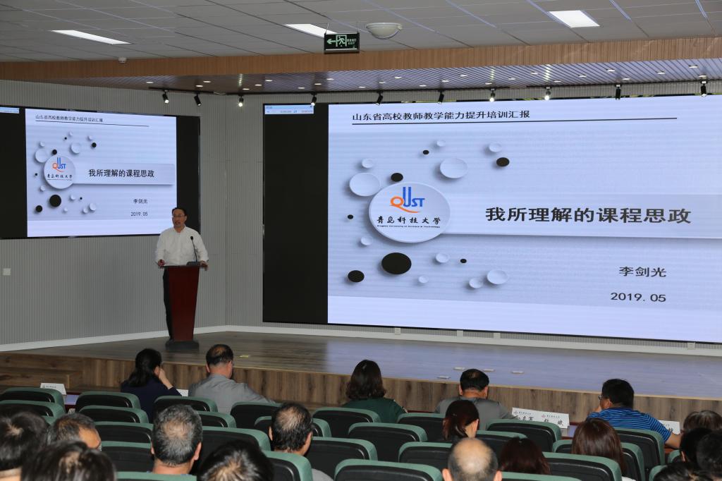 会上首先由力学教研室教师李剑光给大家做课程思政报告,主要从过去为什么未进行、现在为什么要进行、怎么进行课程思政等几个方面进行了汇报,并谈了自己对课程思政的感想。山东省第六届“超星杯”高校教师教学比赛暨青年教师教学一等奖获得者朱惠华主要从课程思政在理论力学教学实践中的应用给大家进行报告,重点给大家做了课程思政在教学中的示范、课程思政在教学过程中如何无缝植入和教学竞赛中教学理念的展现。