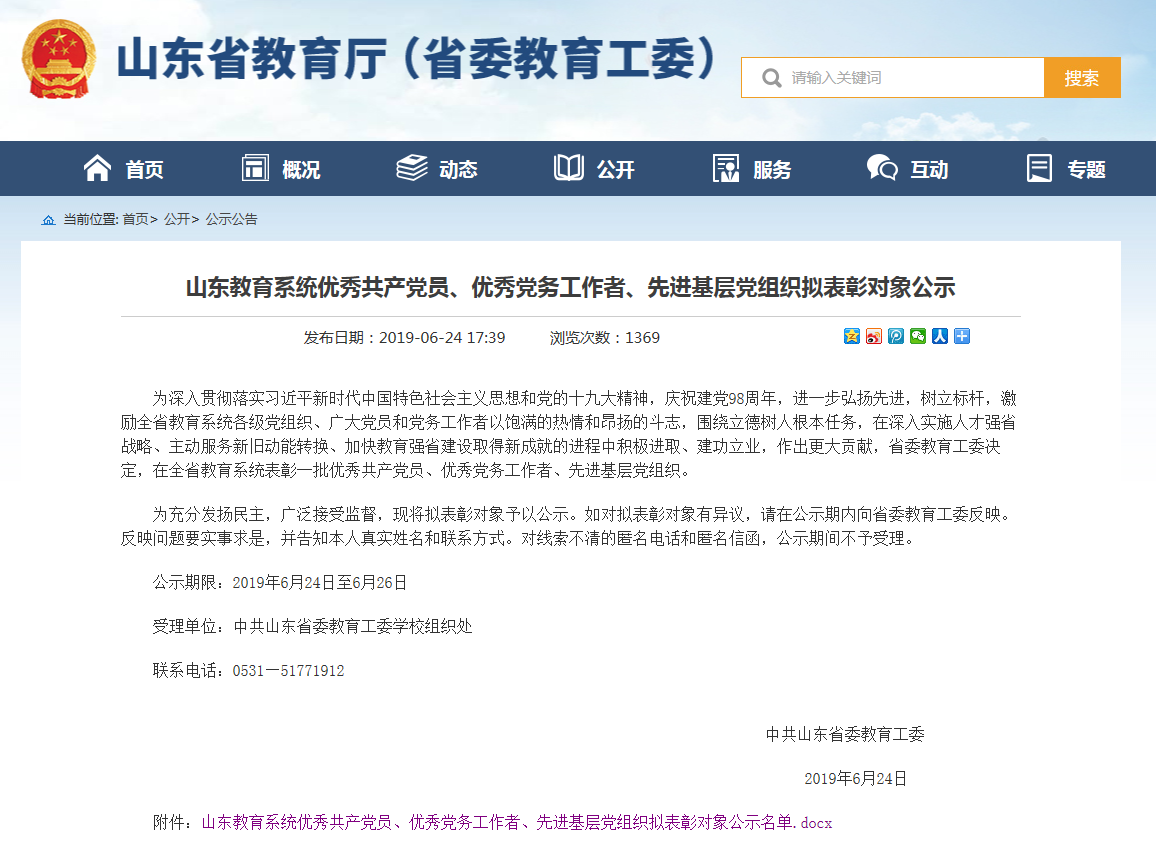 近日,在山东省教育厅公布的山东省教育系统优秀共产党员、优秀党务工作者、先进基层党组织名单中,公司付平老师名列其中。