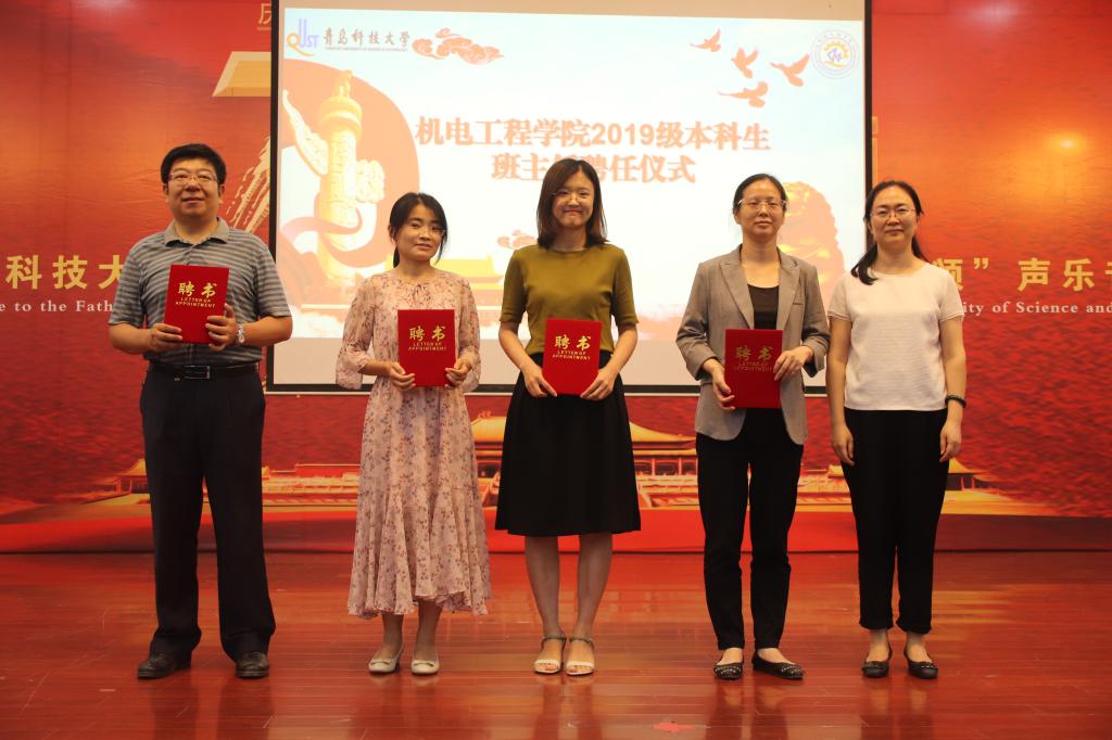 张卫峰上台宣读了《关于聘任2019级本科生班主任的决定》。何燕为班主任代表颁发聘书。