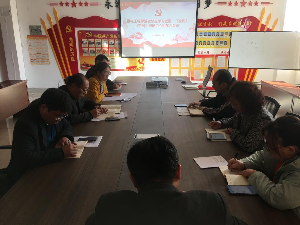 按照公司“不忘初心、牢记使命”主题教育工作部署,根据公司主题教育工作安排,11月11日下午,机电工程公司党总支召开学习党章、《准则》《条例》理论中心组学习会议,此次会议通过集中学习党章、《准则》《条例》旨在为“对照党章党规找差距”专题会议做思想上、行动上准备,会议由公司党总支书记孙立军主持。