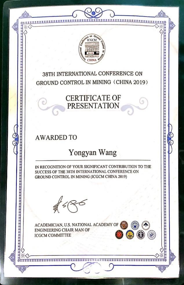 王永岩教授参加了第38届国际采矿岩层控制会议,并应邀作主题报告,引起了高度反响。会中与多名高校专家学者分享了最近几年的研究成果,讨论了国际采矿岩层控制发展状况以及发展方向。王永岩教授还应邀参加重庆大学90周年校庆系列活动——工程科学前沿讲坛,并作题为“地下工程中的反分析方法”的学术报告,重庆大学航空航天公司副经理严波教授向王永岩教授赠送了工程科学前沿讲坛纪念牌。
