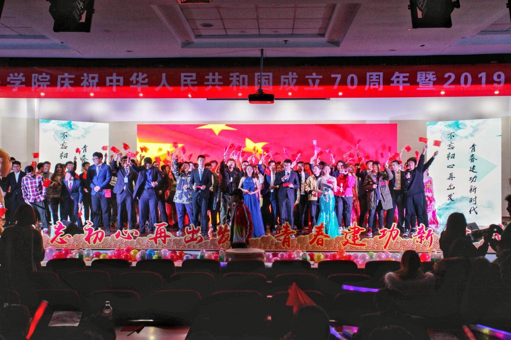 整场晚会精彩不断,高潮迭起,并在情景剧《共和国的脊梁们》和一首《我爱你中国》全场合唱结束晚会,赢得台下阵阵为国之脊梁和为他们崇高精神喝彩的欢呼声。歌声中饱含着的铿锵自信和对未来的无限希望,闪烁着机电学子们青春与梦想的光芒,激励着19级机电学子们学子们不忘初心,紧跟党走,激扬青春,追逐梦想,以优异的综合成绩为祖国华诞献礼。