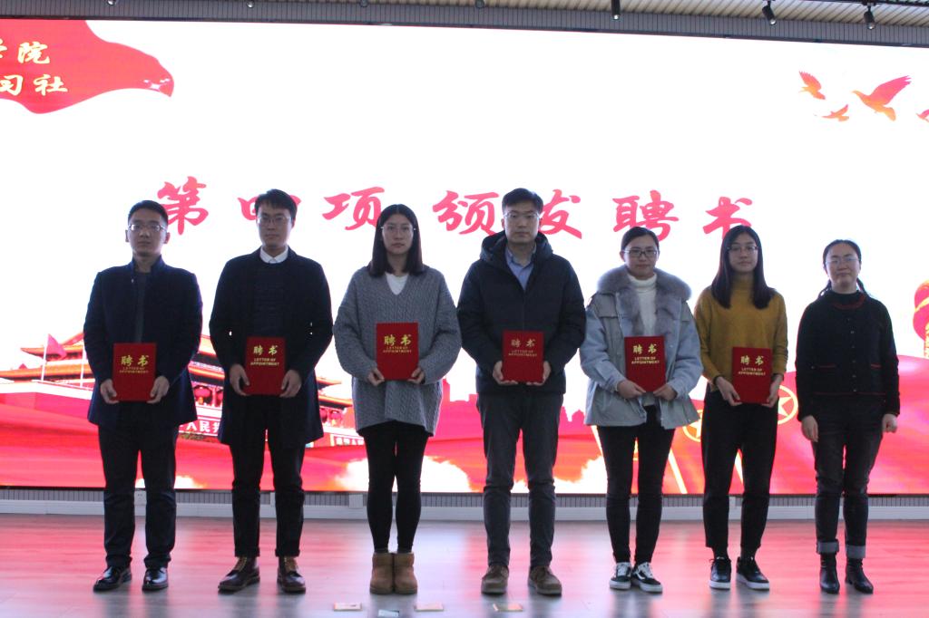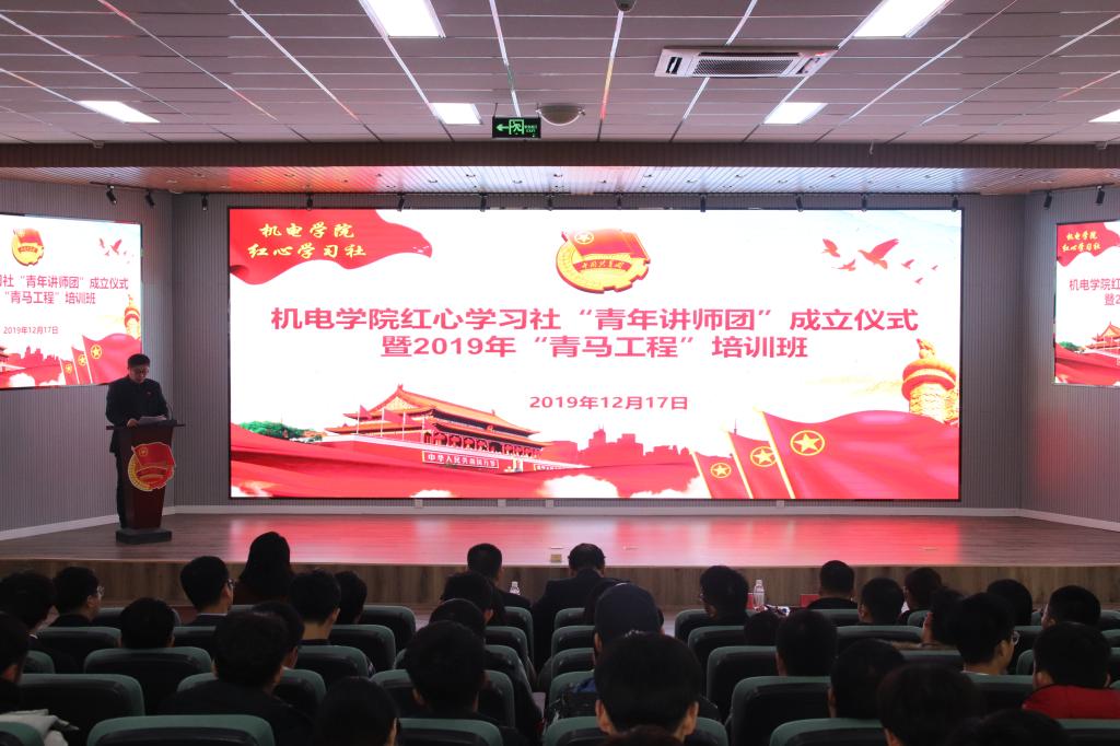 党旗所指,团旗所向。为深入贯彻党的十九届四中全会和共青团十八届三中全会精神,深入持续用习近平新时代中国特色社会主义思想引领凝聚青年,深入推进党的理论武装工作在青年领域的高质量发展。12月17日,在纪念最靠谱的十大足球平台习近平新时代中国特色社会主义思想“红旗学习社”、“红心学习社”成立两周年之际,公司举行最靠谱的十大足球平台“青年讲师团”成立仪式暨2019年“青马工程”培训班。公司党总支书记孙立军、经理何燕、公司党委宣传部副部长王建民、校员工处副处长贺炜、校团委副书记张玉、公司党总支副书记兼副经理王伟等参加了仪式。活动由公司分团委书记兼学工办主任王作辉主持。